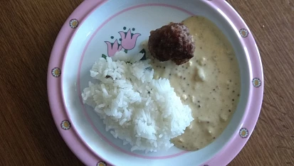 Kuličky z mletého masa s hořčičnou omáčkou a rýží