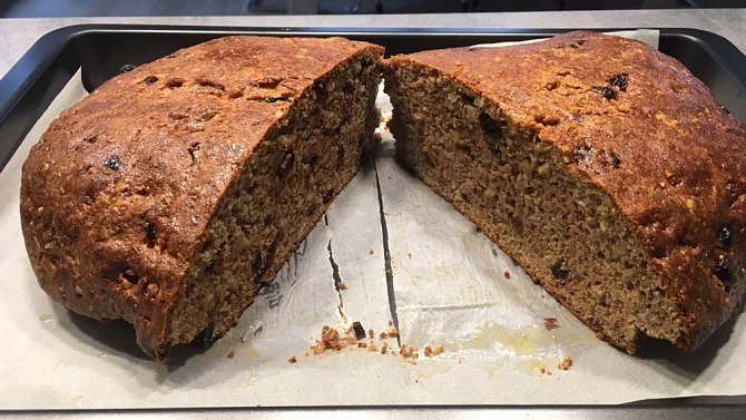 celozrná štola se sušeným ovocem,