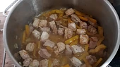 Krok 3: Zalijeme vývarem, aby bylo maso ponořené. Pokud nemáme vývar, zalijeme vodou a přidáme kostku masoxu. Dusíme do měkka.