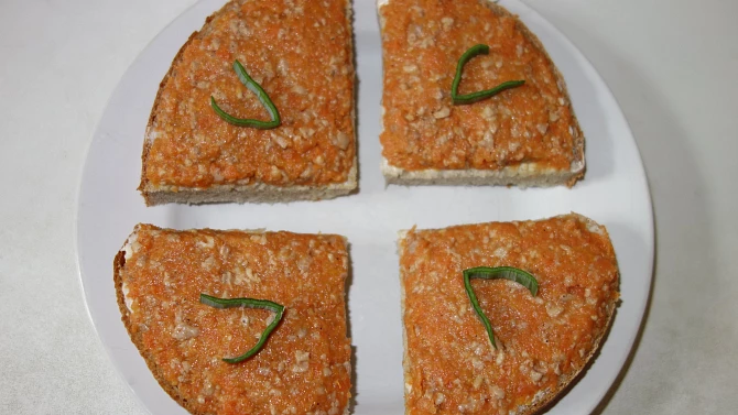 Nejlépe je tuto pomazánku namazat ještě čerstvou na krajíc chleba potřený máslem.