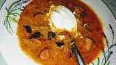 Krok 3: Špek nakrájím na kostičky a udělám jíšku. Na sádle a rozškvařeném špeku osmahnu do světlezlatova drobně nakrájenou cibuli, přidám mouku a zasmahnu ji, přidám červenou papriku, promíchám a odstavím. Jíšku přidám do polévky, provařím nejméně 10 minut. Mezitím ochutnám a dochutím solí a pepřem. Kdo je velký mlsoun a nehledí na kalorie, přidá a zavaří do polévky i kelímek sladké smetany.