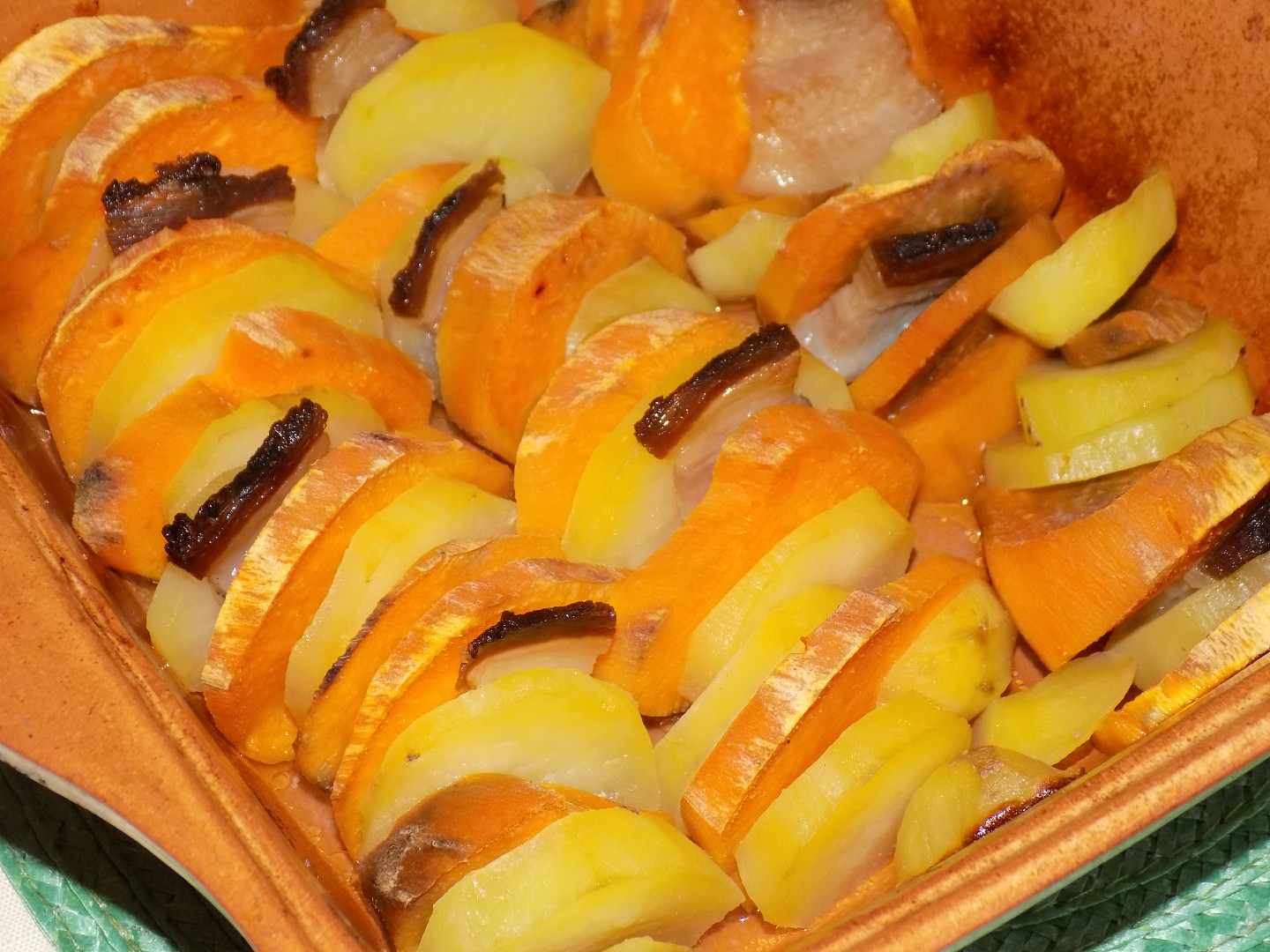 Brambory s batáty a slaninou