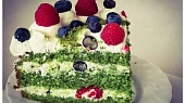 Mechový dort nádherně vypadá a dokonale chutná. Je plný svěžího krému ze šlehačky a mascarpone, lehkého ovoce a zdravého špenátu. Dort krásně ozdobí váš stůl a bude skvělou tečkou za svátečním obědem.