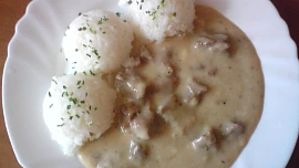Hovězí kostky ve sladkokyselé omáčce se smetanou