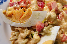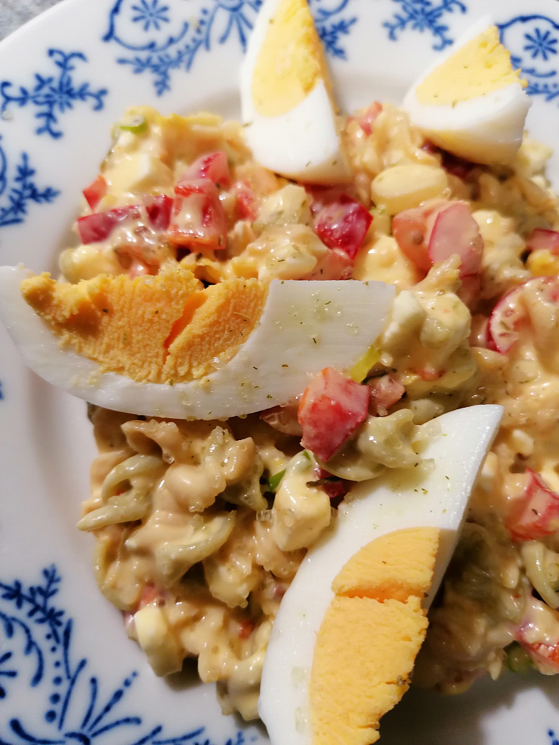 Barevný těstovinový salát s koprovou smetanou