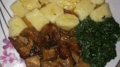 Vepřové nudličky v pikantní omáčce s houbami a sýrem