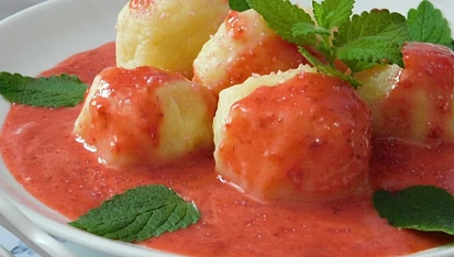 Jogurtové knedlíčky s jahodovo-smetanovou omáčkou