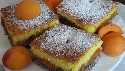 Celá vejce vyšlehat s cukrem a vodou do husté pěny, pak po částech zašlehat olej. Smíchat mouku, prdopeč a vanilkový cukr, pomalu sypkou směs vmíchat střídavě s jogurtem do ušlehané pěny (ručně, ne robotem). Krok 3: 1. těsto dlaní roztáhnout na plech vyložený pečícím papírem, poklást ovocem, posypat skořicí a nechat cca 15 min. na 170 °C zapéct. Mezitím připravit 2. těsto, nalít na předpečené řezy a upéct dozlatova.