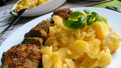 Masové karbanátky s kapustou a cuketou + "chudý" bramborový salát