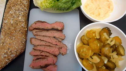 Hovězí "à la pastrami " do baget a skvělé okurkové řezy