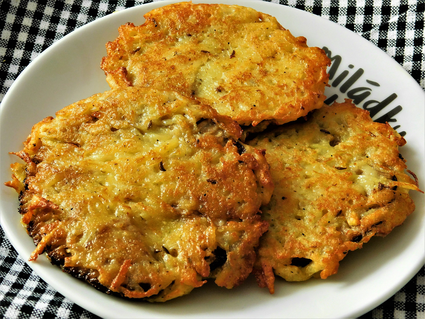 Krok 4: Smažíme z obou stran dozlatova. Odkládáme hned na papírový ubrousek a důkladně vysajeme přebytečný tuk. Těsto drží dobře a tím pádem se placičky dobře otáčí.