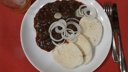 hospodský hovězí guláš zahuštěný starým chlebem,