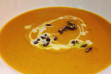 Jednoduchá dýňová polévka s praženými dýňovými semínky