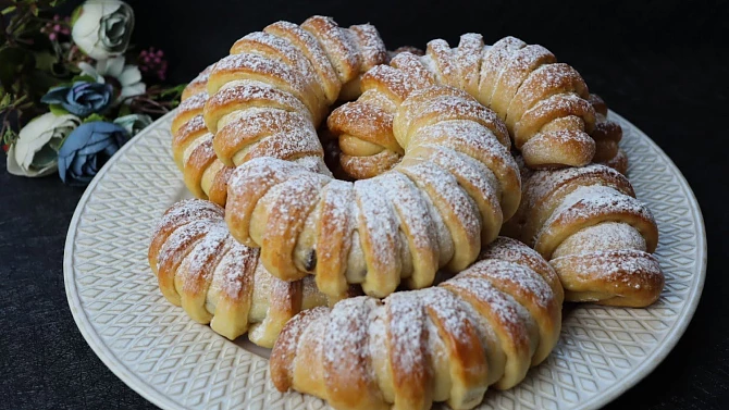 Upečené rohlíčky nechte vychladnout. Poté si je zasypte moučkovým cukrem. Krok 6: Zadělání těsta v robotu nebo ručně: Mouku do mísy, důlek, do něj droždí, zasypat lžičkou cukru (to droždí), zalít trochou vlažného mléka a cca 20 minut nechat na teplém místě vzejít kvásek. Ke kvásku potom zbylé ingredience. Jen tedy sůl nedávejte přímo do kvásku, ale někam ke stěně mísy. Zadělejte těsto.