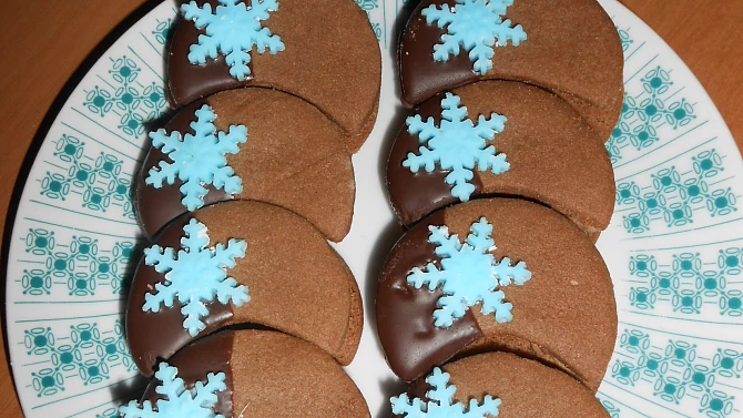 Druhý den rozválíme na tenčí placku, pokud budeme rohlíčky plnit a slepovat a vykrájíme např. půlměsíčky. Pečeme na pečícím papíru na 160 st C- asi 12-15 minut. Dle síly těsta. Krok 3: Čokoládový krém připravíme tak, že uvařený čokoládový pudink pokojové teploty rozšleháme a postupně přidáme 150 g změklého másla. Vyšleháme do pěny. Krok 4: Polovinu upečených půlměsíčků namočíme z poloviny do rozpuštěné čokolády, do které jseme předtím přimíchali 2 PL oleje. Necháme zatím ztuhnout a krémem naplníme druhou polovinu měsíčků. Následně slepíme k sobě. Zdobíme dle vlastního uvážení.