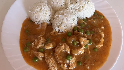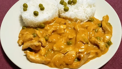 Kuřecí nudličky v omáčce s hráškem