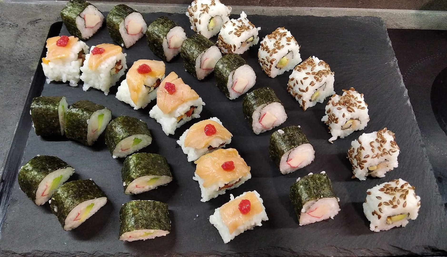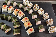 Varianty např. s lososem, avokádem, tuňákem, okurkou, rukolou... Fantazii se meze nekladou :) !