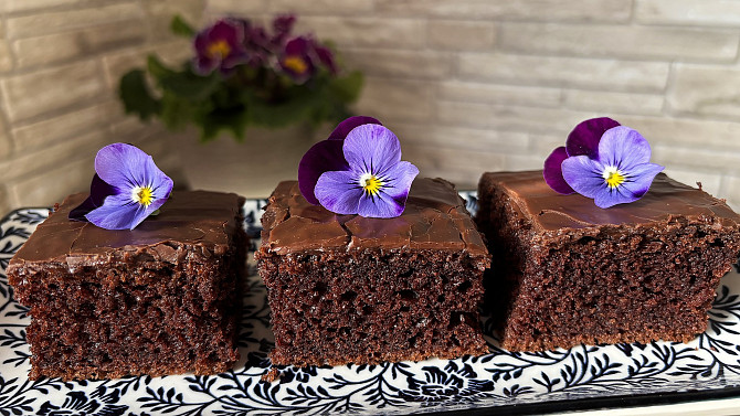 Krok 3: Vlijeme těsto na plech, vložíme do trouby a pečeme přibližně 40 minut. Necháme vychladnout, polijeme hořkou čokoládou, můžeme posypat kokosem nebo mandlemi.