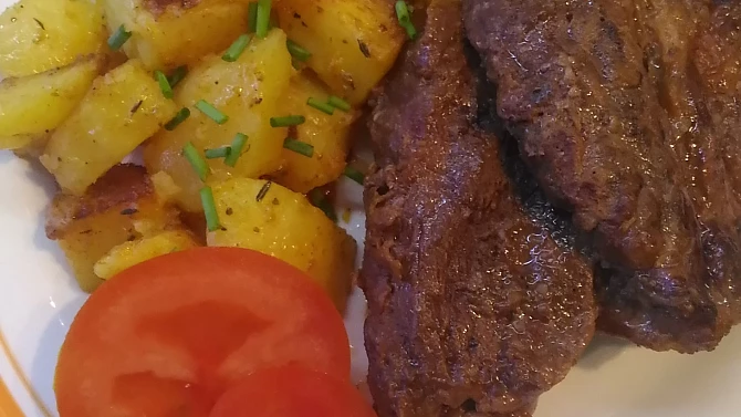 Vezmi ten krk hovězí a nakrájej na kusy podle toho, jak se dělí i s tím tukem. Osol ho. Krok 2: Potom nasekej cibulku na drobno a nadrť česnek, dej do misky a přidej vše tekuté. A ten krk v tom pěkně vykoupej. Když nebudeš línej, tak to udělej večer. Krok 3: Ráno vezmi ohnivzdornou misku nebo kastrol s poklicí a vše tam přesuň i se zbytkem marinády. Vlož do trouby vyhřáté na 130 stupňů a nech to tam tři a půl hodiny. Krok 4: Zkus, jestli se to skoro rozpadá. Jak? Vezmi mezi prsty kousek masa a zmáčkni. Když je to hodně měkké a pustilo to šťávu, tak je to OK. Jinak tomu dopřej ještě půl až tři čtvrti hodinky. A je hotovo. Krok 5: Já uvařil nové brambory, opekl na sádle s troškou sladké papriky, solí, pepřem a pažitka tomu dala korunu. I když jsem si myslel, že to sežerou slepice, ale opak byl pravdou. Dobrota nesmírná a náš tatínek prohlásil: Dědo, nikdy jsem lepší hovězí nejedl. A dokonce i zbylo a druhý den. To si nedokážete představit, to bylo prostě žrádlo pro horních deset tisíc, ale my jim ho slupli a už se všichni těšíme na opakování.