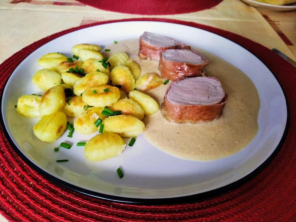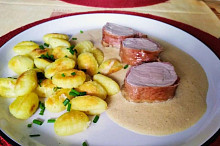 Domů - Recepty - Vepřová panenka s dijonskou omáčkou a kuskusem