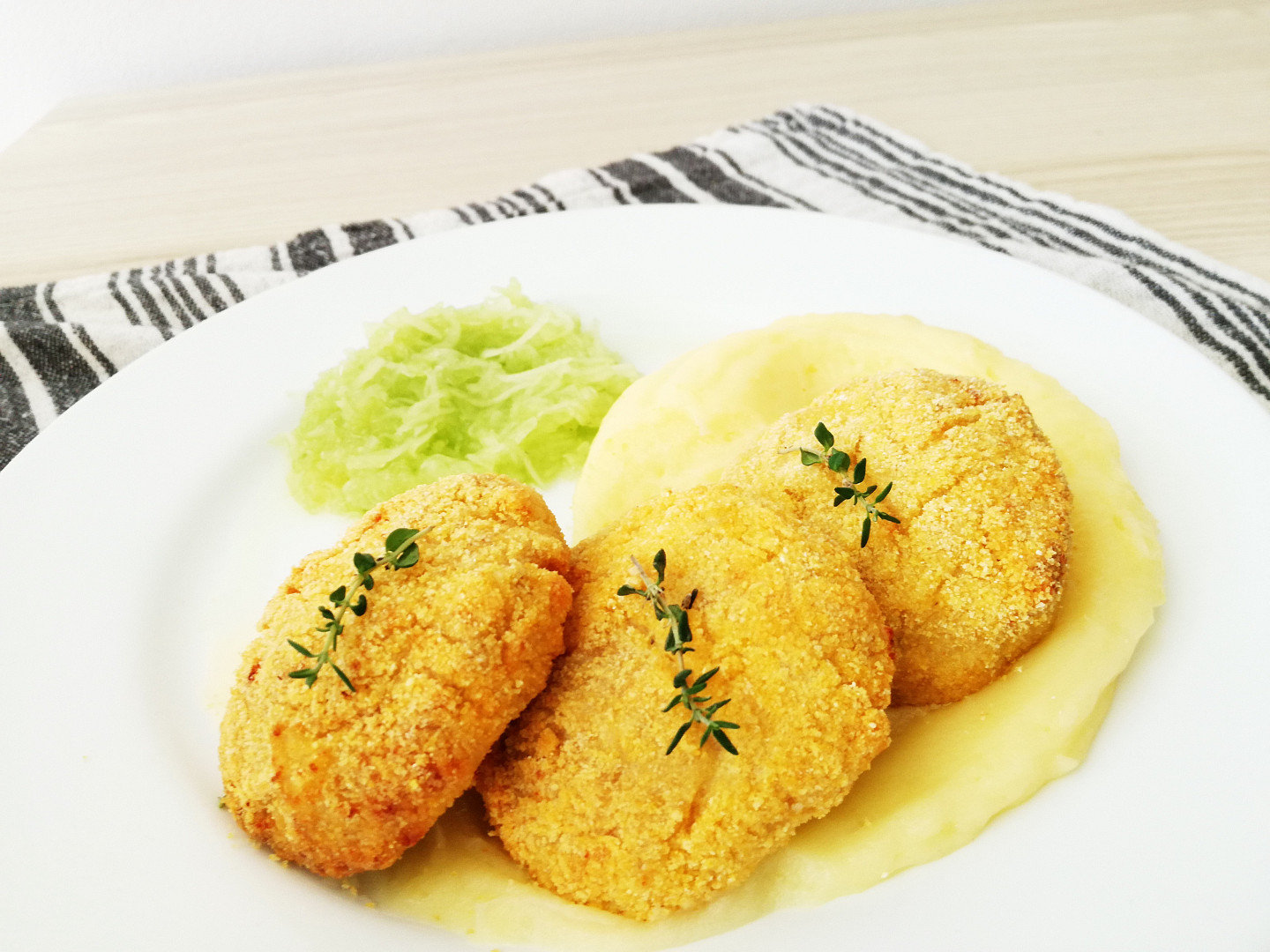Krok 2: V hlubším talíři rozšleháme všechna vejce se špetkou soli a do druhého talíře vysypeme polentu. Zvlášť do misky jsem připravila čistou vodu, protože těsto z masa se hodně lepí, tak abych si mohla namáčet ruce a dobře se mi tvarovaly "holanďáky". Takže namočit ruce, vytvarovat, obalit ve vajíčku a poté v polentě. Vyskládat na pečící papír, rozpálit troubu a péct na horkovzduch při 200° C dozlatova, cca 15 minut.