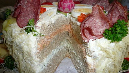salámové dorty,
