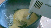 Krok 1: Nejdřív si ušleháme sníh z bílků. Pak ušleháme cukr se žloutky a nakonec přidáme mouku s práškem do pečiva.