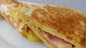 Necháme sýr roztopit, poté překlopíme na půlku, lehce přimáčkneme a ještě trochu opečeme. Krok 3: Hotový wrap můžeme dát na talíř a můžeme rozkrojit na půlku.