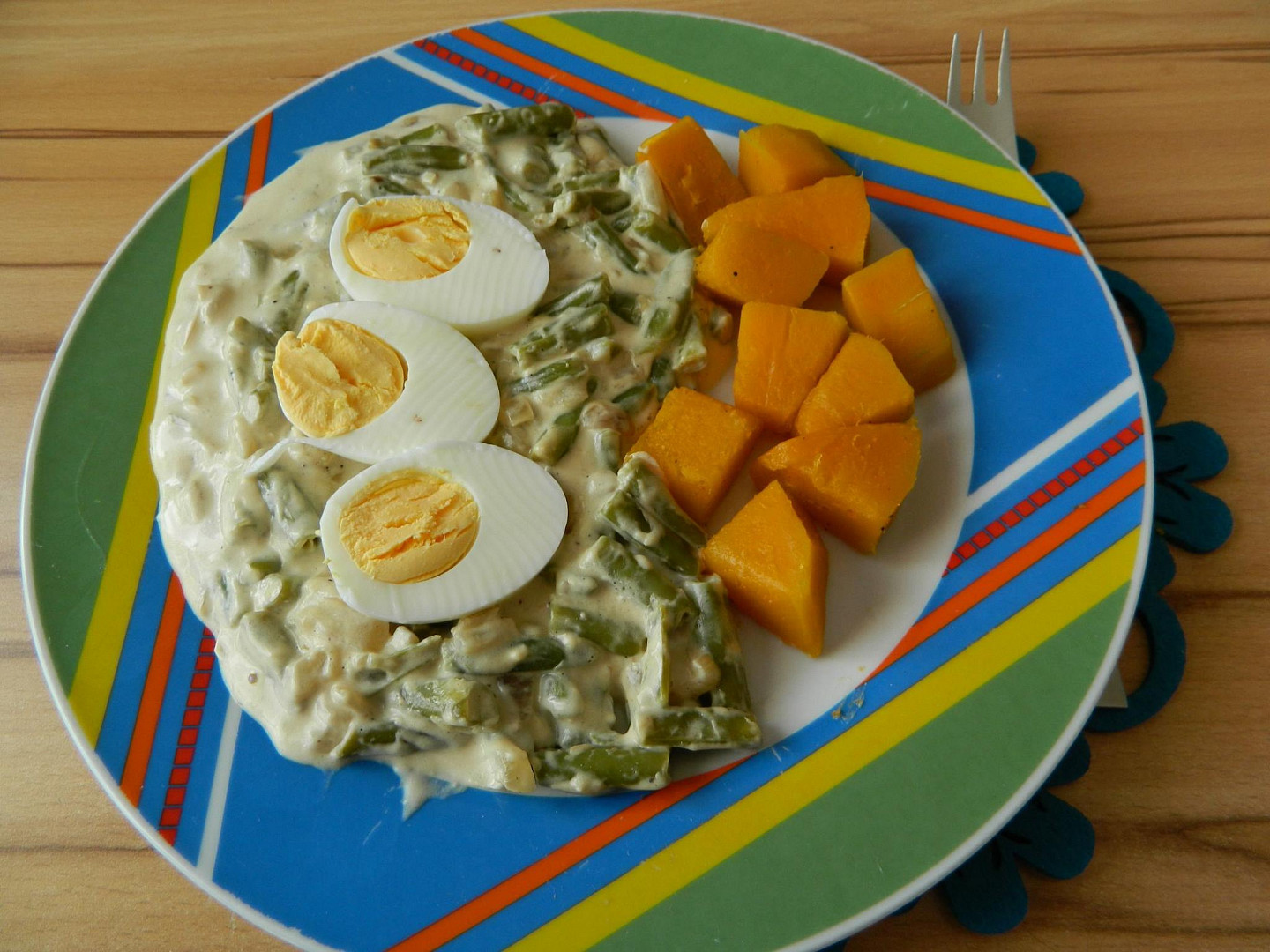 Podávám s vařenou zeleninou a s uvařenými a oloupanými vejci.