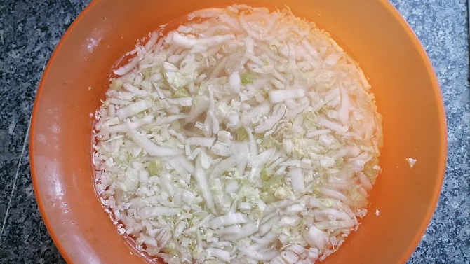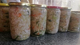 Osolíme špetkou soli, promícháme a necháme odležet. Zelí zatím pustí šťávu. Krok 2: V jednom litru horké vody rozpustíme 80 gramů cukru a necháme zchladnout. Do vlažné vody pak přidáme čtyři polévkové lžíce Znojemského octa (má podle mne výraznější chuť). Krok 3: Touto zálivkou zalejeme odležené zelí a dáme do lednice vychladit. Hodí se jako salát k bramborové kaši s pečeným masem.