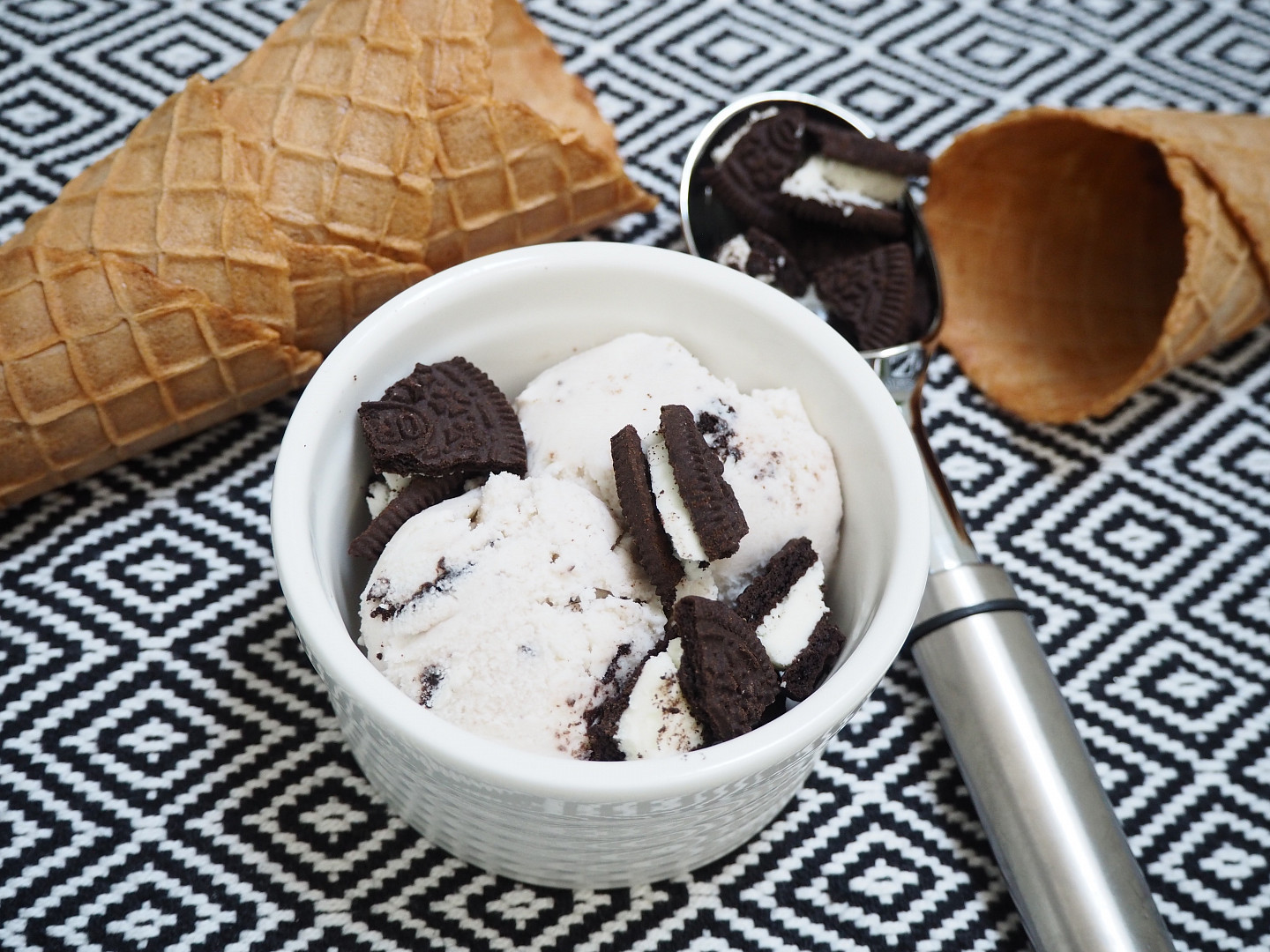 Krok 2: Poté nalijeme do zmrzlinovače a pomalými pohyby mícháme asi 15 minut. Ke konci vsypeme rozdrcené Oreo sušenky a ještě řádně promícháme. Dáme do vhodné nádoby a vložíme do mrazničky. Já používám ruční zmrzlinovač od Tescomy a jsem velice spokojená.