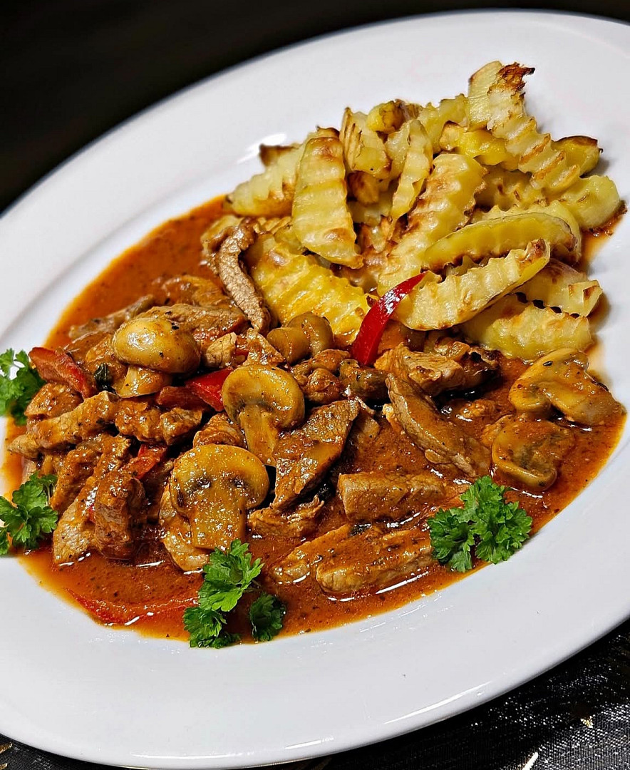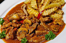 Vepřové nudličky se žampiony a paprikou
