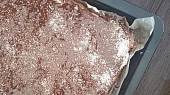 Zapneme troubu na 200°C. Oddělíme žloutky od bílků a z bílků vyšleháme tuhý sníh. Přimícháme cukr krystal i vanilkový cukr, pak zašleháme žloutky a nakonec přidáme a zašleháme ostatní suroviny - olej, vodu, mouku, kakao, kypřící prášek. Tuto směs nalejeme na vyšší plech o rozměrech cca 30x30 cm, který jsme buď vymazali tukem a vysypali kokosem a nebo vyložili pečícím papírem. Vložíme do vyhřáté trouby a necháme péct cca 25 minut. Krok 2: Příprava krému: