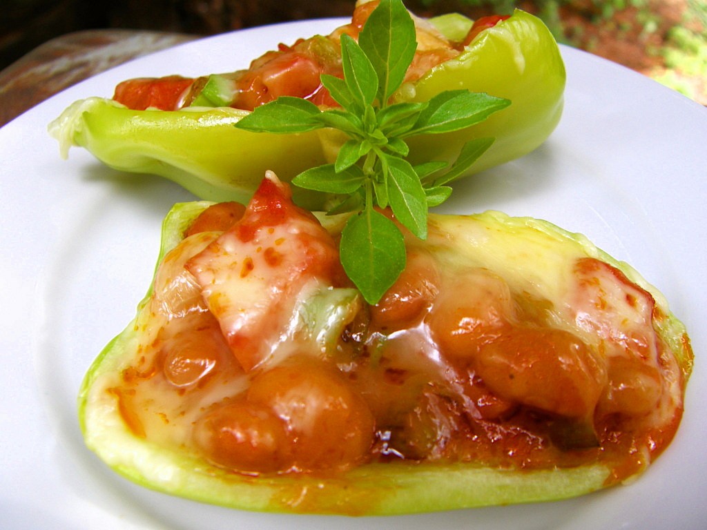 zapečené papriky s fazolemi,