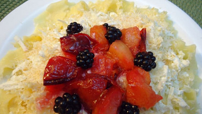 Tuto přesnídávku jsem také dělala, když se to ještě rozmixuje ponorným mixérem tak slupky nejsou ani vidět ani tam nevadí. Dělala jsem ji pro ročního vnuka.