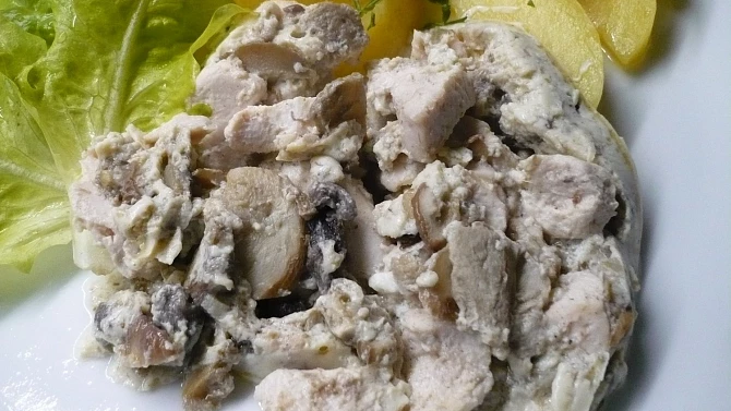 Kuřecí nudličky s houbami z parního hrnce i s bramborami