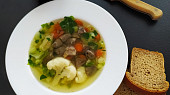 Vývar z hovězích žeber se srdíčky a zeleninou