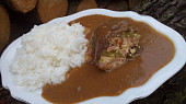Krok 4: Po změknutí masa ptáčky / závitky / roládky vyndáme stranou, po chvilce odstání sundáme provázky. Šťávu rozmixujeme dohladka, dochutíme dle potřeby solí, pepřem, troškou okurkového láku či jemně pokrájenou okurkou a je-li třeba, můžeme ji zahustit troškou jíšky a nechat krátce provařit.
