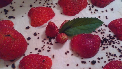 Krok 3: Na poslední vrstvu krému nadekorujeme jahody a zasypeme kakaem.