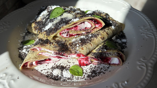 Krok 5: Placičky po upečení potřeme máslem, povidly, smotáme a posypeme mákem. Pokud je nechcete hned plnit, položte je na talíř a přikryjte utěrkou, aby si zachovaly vláčnost a teplotu.