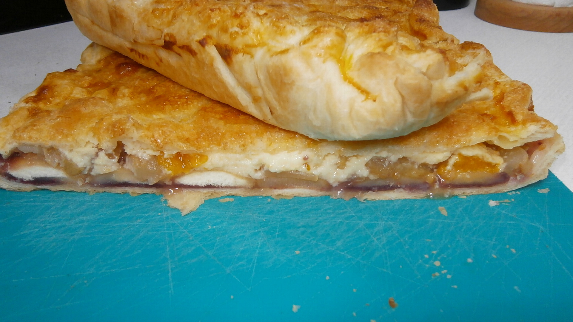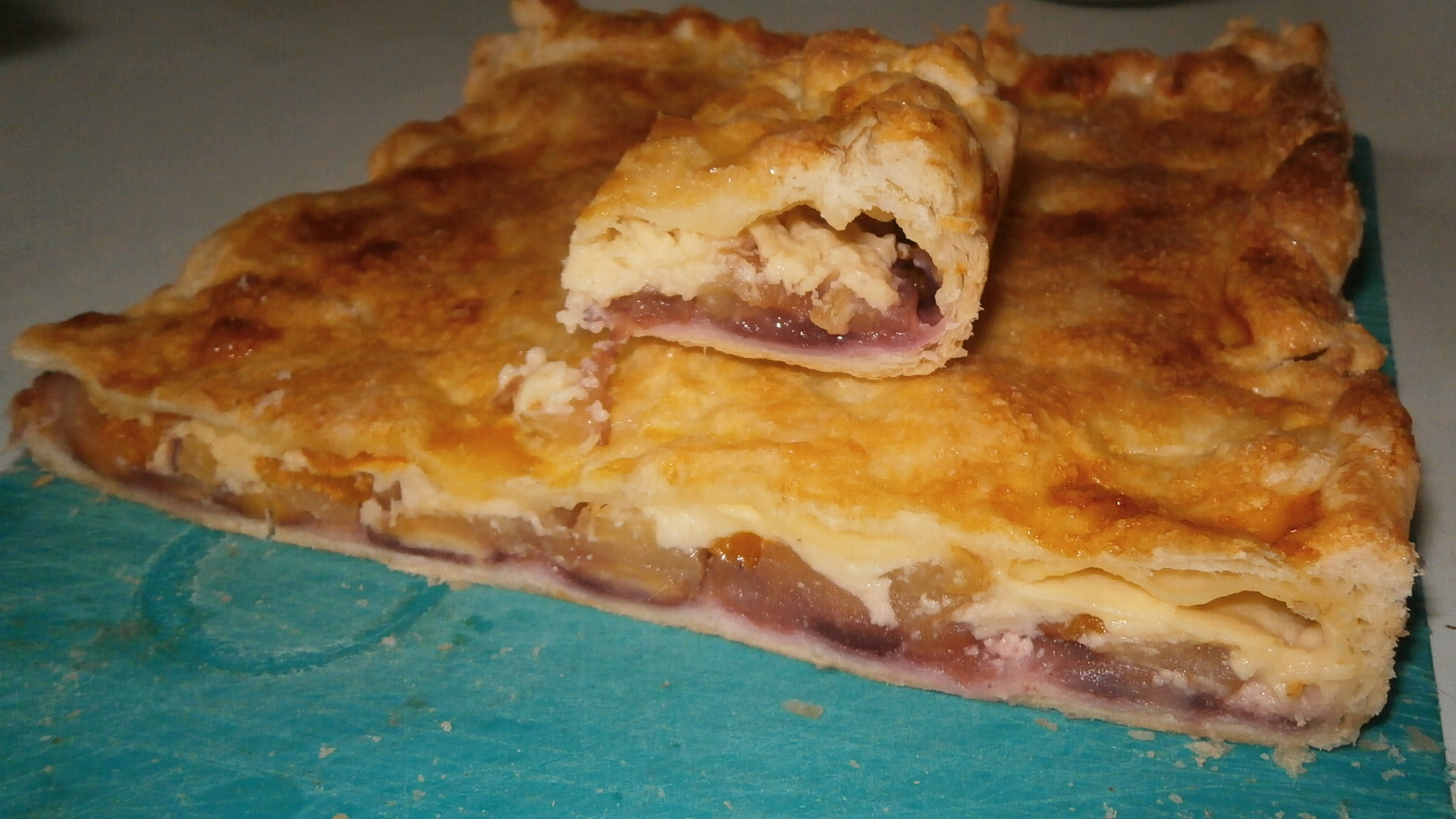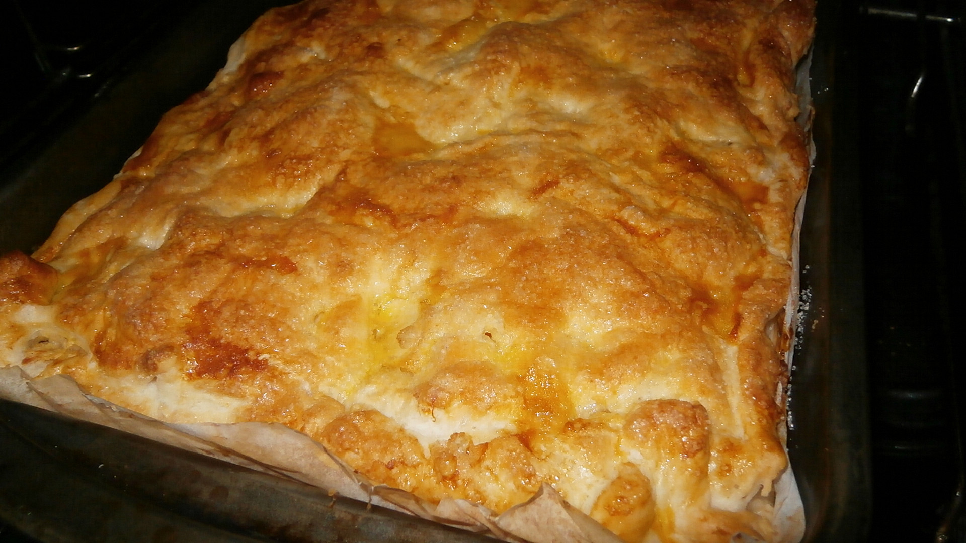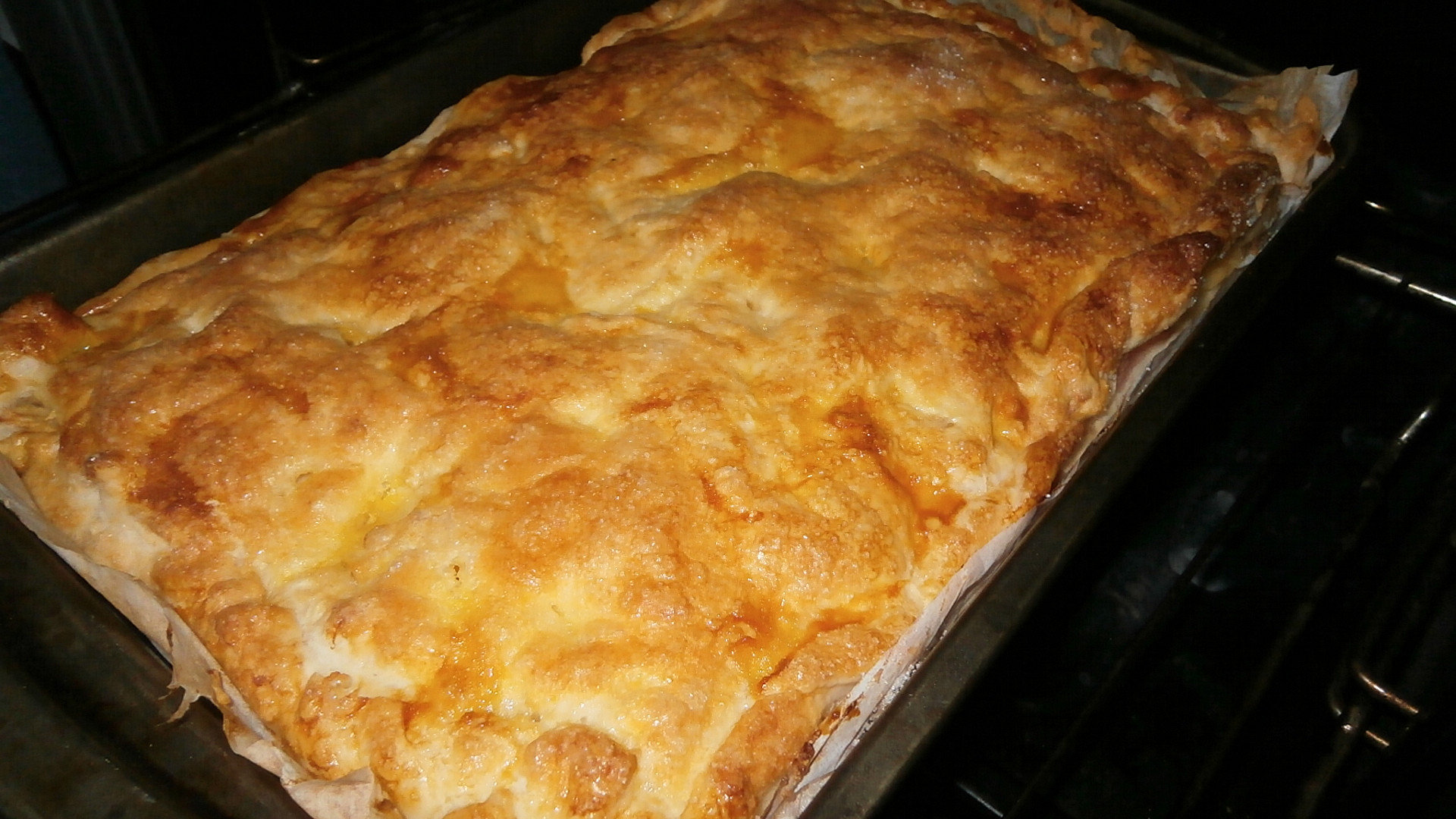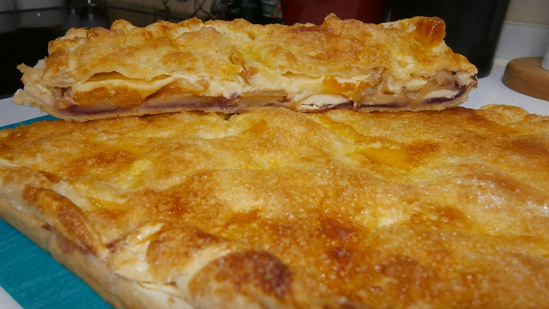 Domů - Recepty - Listové řezy s pudinkem, piškoty a broskvemi