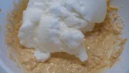 V dostatečném předstihu zapneme troubu a předehřejeme ji na 170 °C. Krok 2: Připravíme náplň. Tvaroh smícháme s cukrem a pudinkem a taktéž vmícháme drobně pokrájená jablka. Tvaroh sladíme dle sladkosti / kyselosti jablek a též ho můžeme dochutit citronovou kůrou nebo skořicí. Krok 3: Připravíme těsto. Vejce rozdělíme na žloutky a bílky a z bílků vyšleháme pevný sníh. Krok 4: Žloutky prošleháme s cukrem a promícháme s nastrouhanými jablky. Dochutíme skořicí nebo citronovou kůrou, případně obojím. Vmícháme olej, polohrubou mouku smíchanou s práškem do pečiva a nakonec už lehce vmícháme tuhý sníh. Krok 5: Těsto nalijeme do připravené formy a poklademe hromádkami jablečného tvarohu.