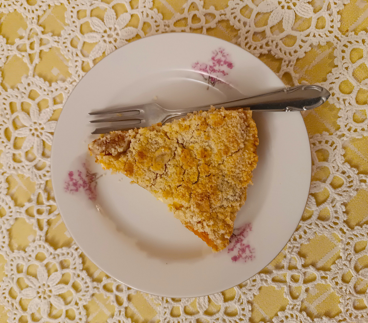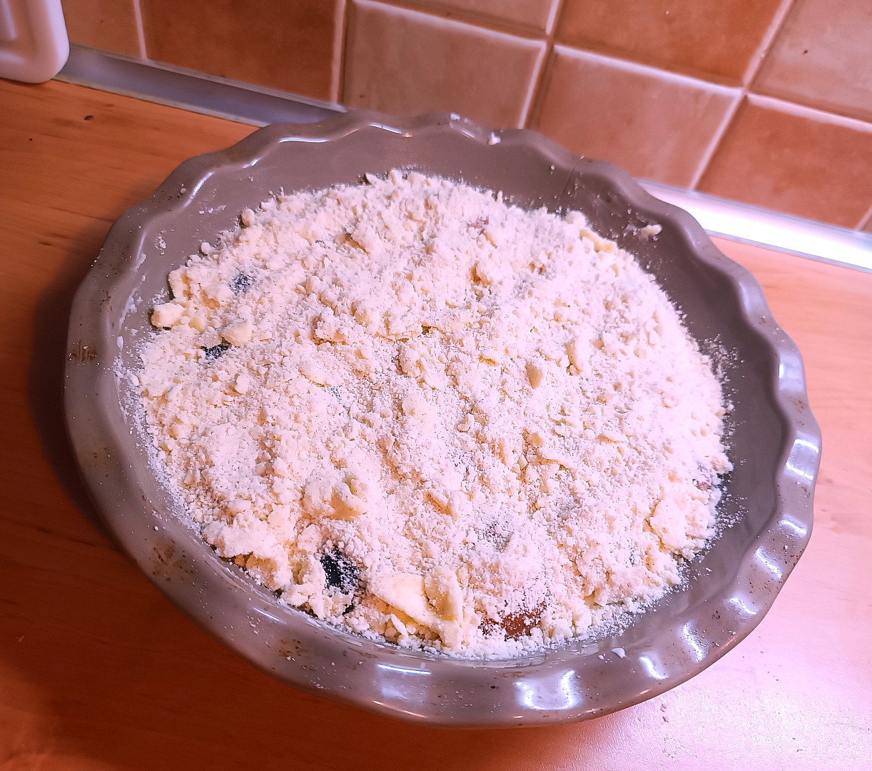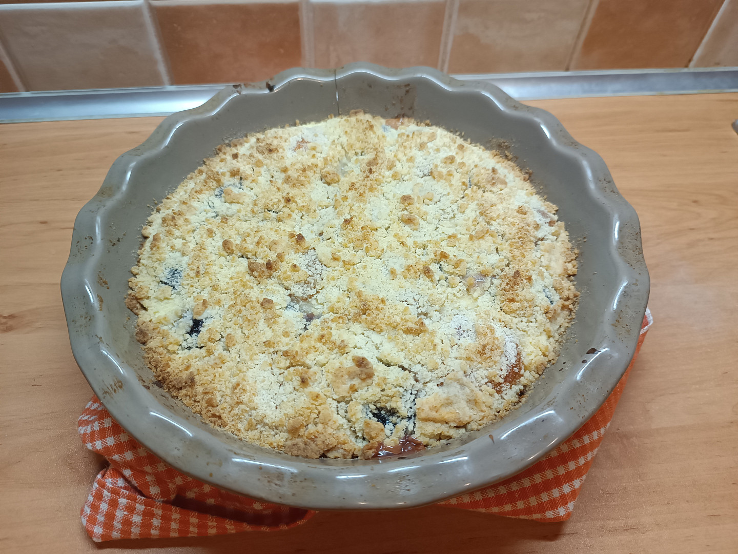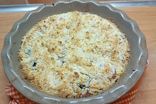 Švestkový (meruňkový) drobenkový koláč s pudinkovým tvarohem pro Fikinu