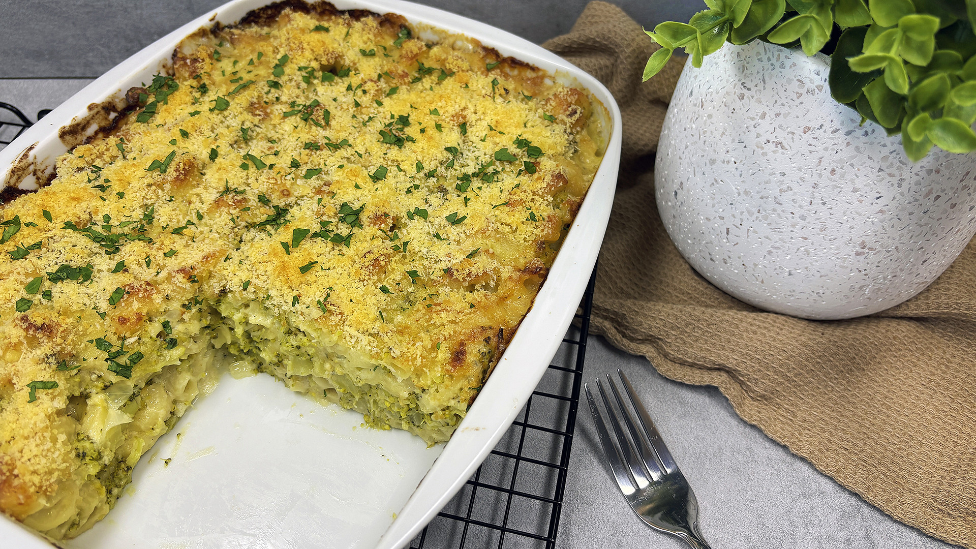 Zapečené těstoviny s brokolicí a sýrem
