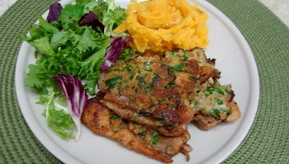 Sumeček v bylinkové krustě a bramborovo-mrkvové pyré