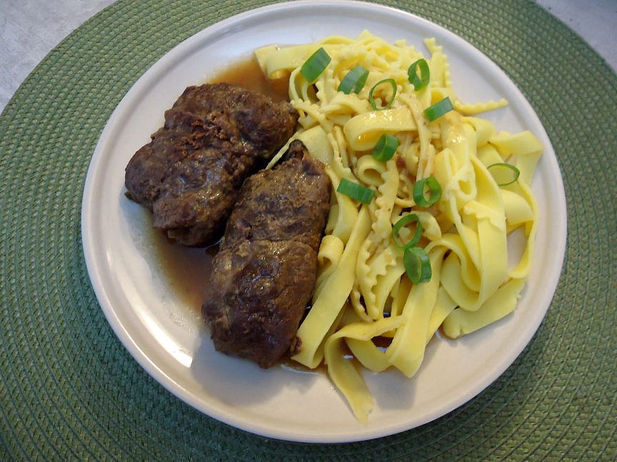 Krok 3: Dle potřeby ještě jednou podlijeme horkým vývarem ale neděláme šťávy zbytečně mnoho. Měkké závitky vyndáme stranou (uchováme v teple) a šťávu propasírujeme. Cibule sos zahustí, ale kdo chce, může použít 1 lžíci jíšky a povařit, Podle chuti přisolíme a opepříme. Podáváme s rýží, těstovinami nebo vařeným bramborem, doplníme salátem dle chuti.