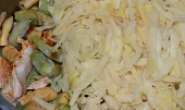 Vložíme na rezance narezané mäso a krátko orestujeme.