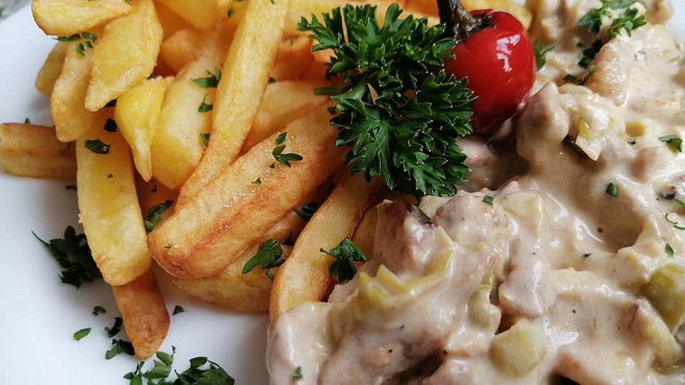 Dušením vývar zredukujeme na minimum. Krok 3: Když už je maso měkké, přidáme smetanu a petrželku a odstavíme z kamen. Podle potřeby dochutíme solí.