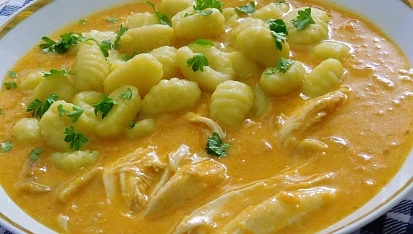 Kuřecí kari nudličky se sýrem a pórkem na smetaně