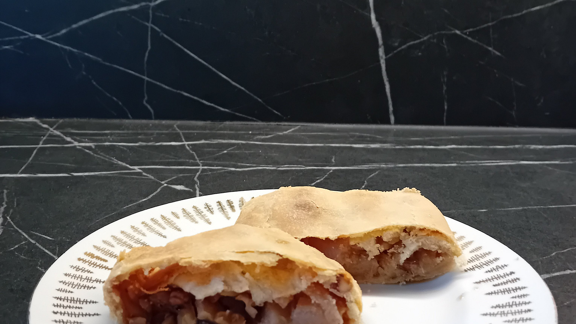 Krok 1: Z prosáté mouky, mléka, vejce, oleje, octa a soli vypracujeme na vále pružné těsto. Zadělané těsto přiklopíme nahřátým kastrolem a necháme asi 1/2 hodiny odpočinout.